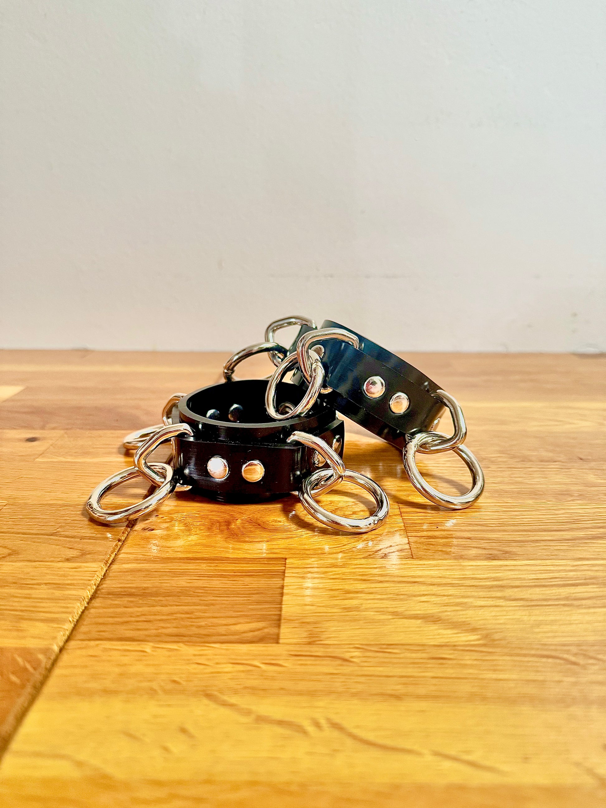 3 1" bondage rings on a 1 1/4" pvc bracelet