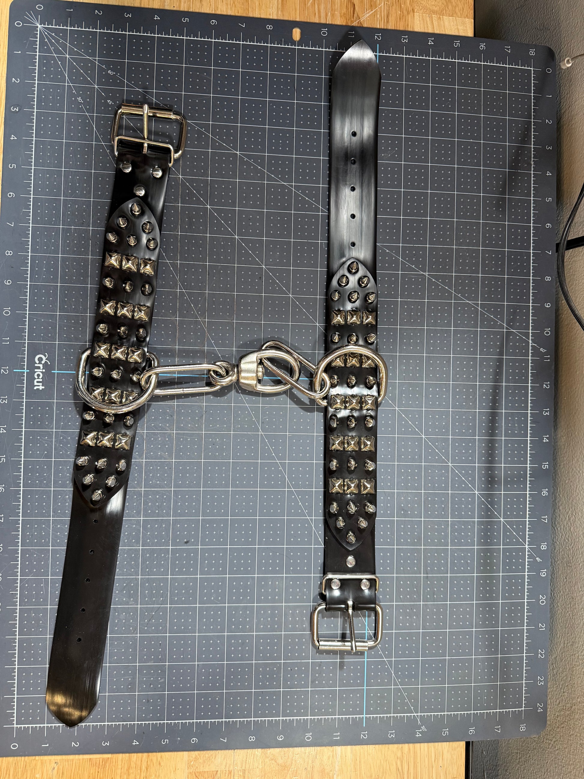 With 30 1/2"nickel plated studs, 48 1/2" nickel plated spikes and hobble chain on 1 3/4" pvc this set is sure to please.